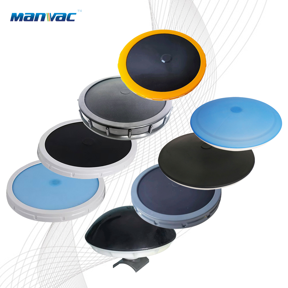 Plate series aerators are composed of chassis, air distribution disc, synthetic rubber diaphragm, compression ring, air guide plate, connecting base and connecting pipe connection piece. The base is made of ABS plastic, and EPDM rubber diaphragm covers the air flow plate. Under the action of the fixed ring, no air leakage can be ensured around the diaphragm. A large number of evenly distributed holes are distributed on the rubber diaphragm. This kind of rubber diaphragm is made of multi-channel special processing technology, with stable performance and resistance to medium concentration of acid, alkali, oil and other media. It is an aerator put into engineering operation earlier.